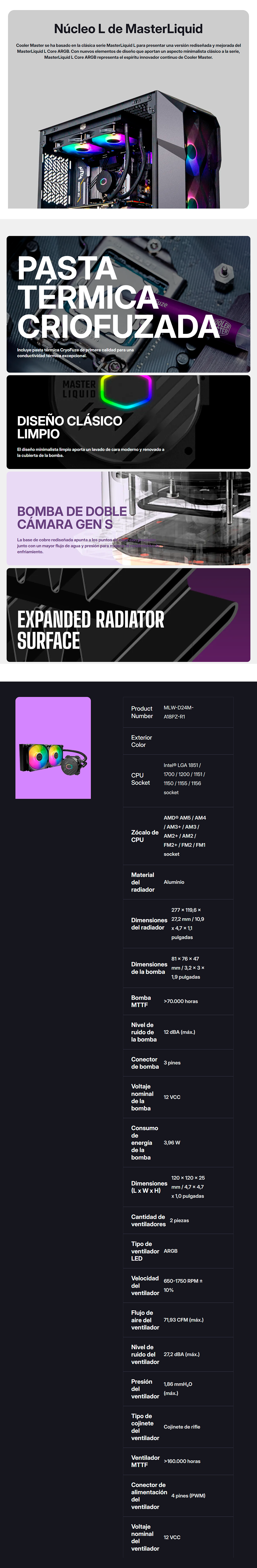 Enfriamiento Líquido Cooler Master Core II ARGB / 2x120mm / Hasta 1750RPM / Negro / MLW-D24M-A18PA-R1