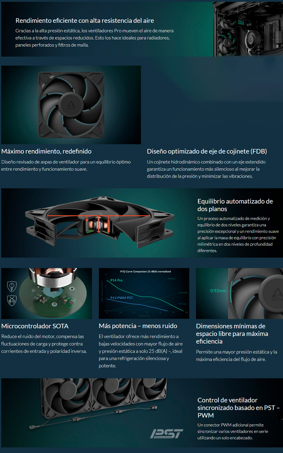 Kit 5 Ventiladores Arctic P14 PRO PST / 5x140mm / 2500RPM / Negro / ACFAN00319A
