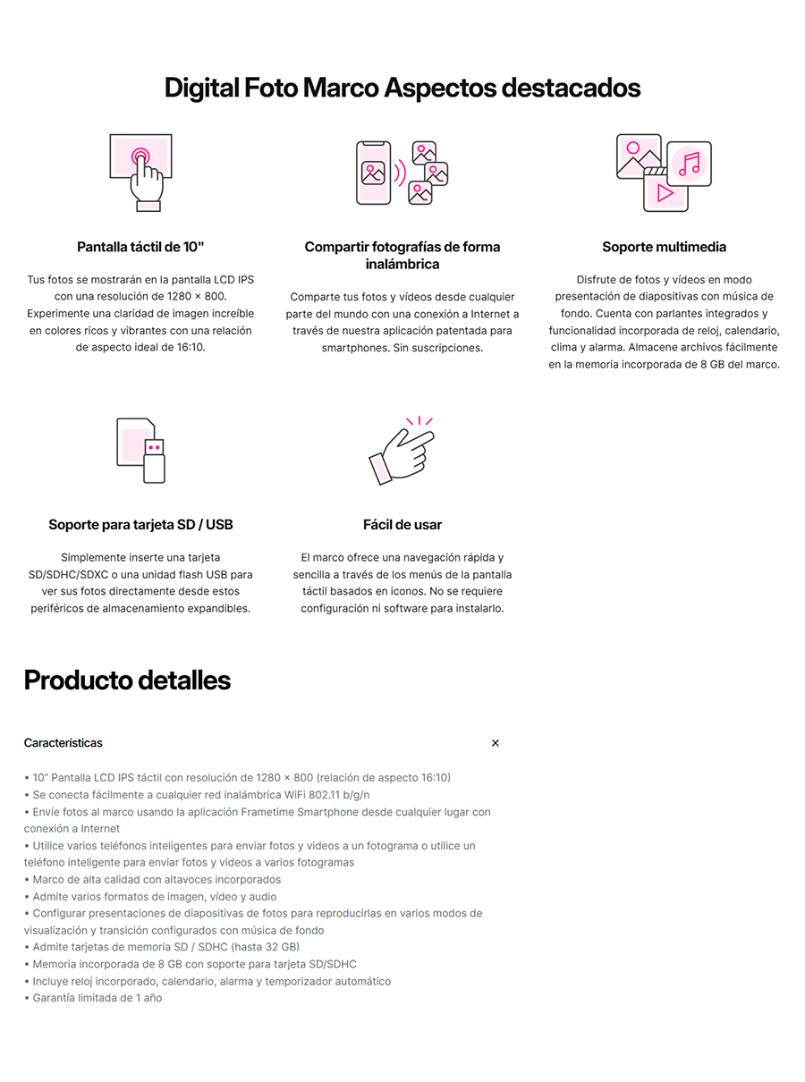 Marco de Fotos Digital Aluratek / Con Visualización Táctil WiFi de 10 Pulgadas / Con Memoria Interna de 8 GB / ASHDPWM10S