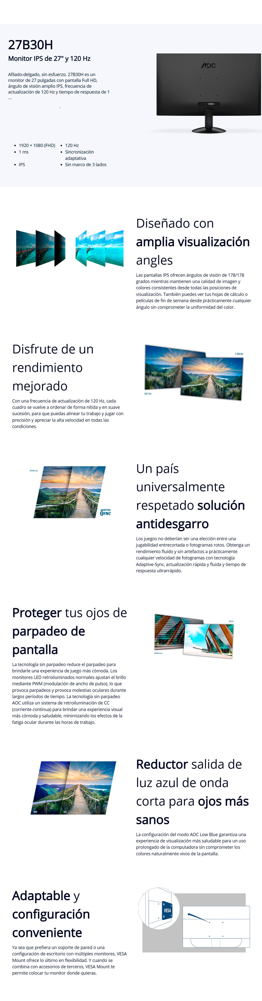 Monitor AOC 27B30H / LED / 27" / 1920x1080 Full HD / 100Hz / HDMI / Negro / 27B30H
