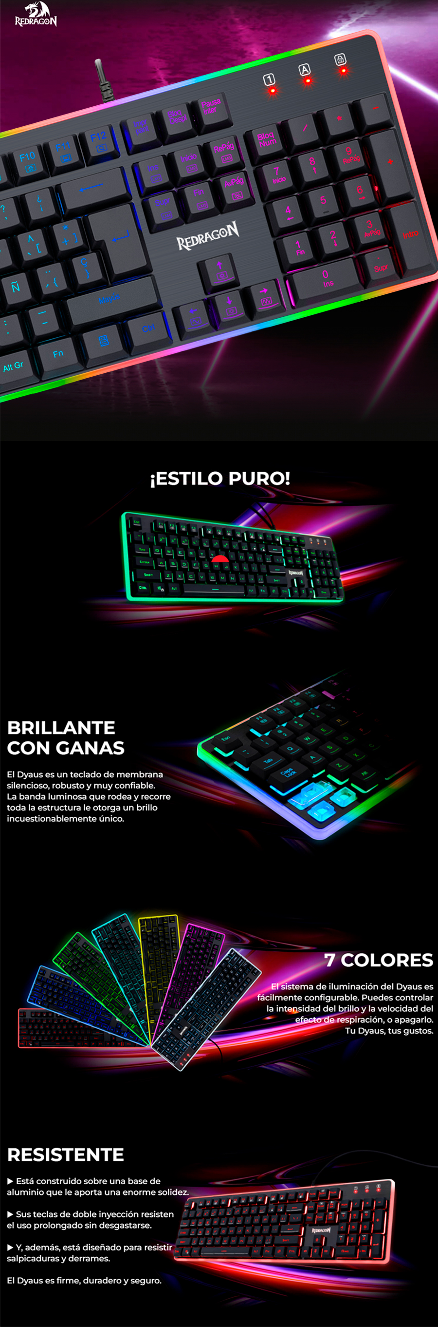 Teclado Gamer Redragon DYAUS 2 K509 RGB / Teclado Membrana / Alámbrico / Español / Negro / K509RGB-SP