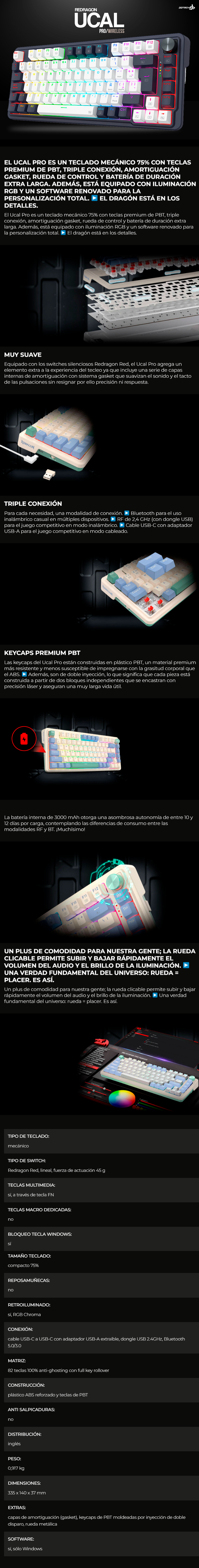 Teclado Mecánico Redragon UCAL PRO K673 / Hot Swap / Inalámbrico / 75% / RGB / 3 modos / 81 teclas / Control De Perilla Dedicado / Abyssal Blue / Swtich Red / Español / K673WB-RGB-PRO SP