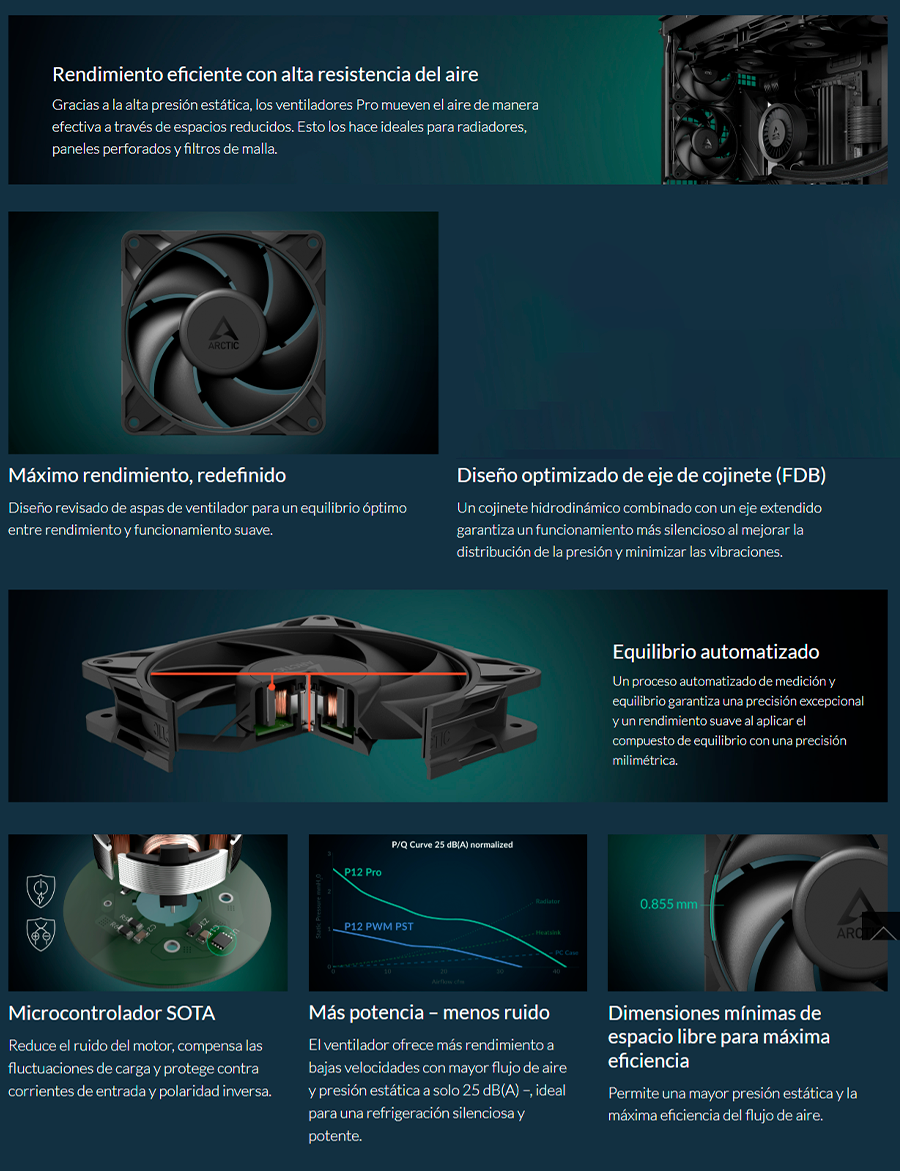 Ventilador Arctic Cooling P12 PRO / 120mm / 3000RPM / Negro / ACFAN00305A