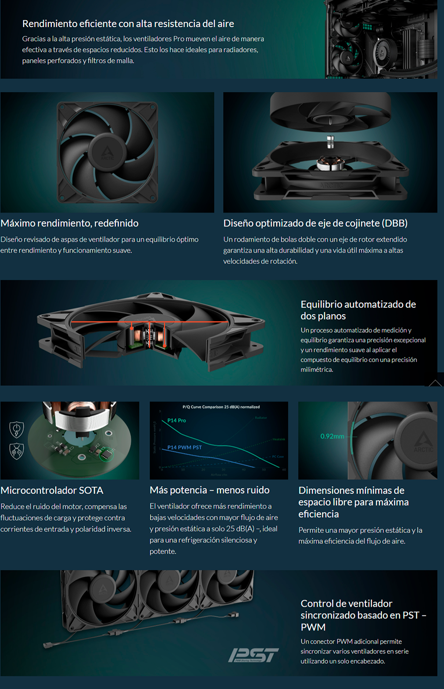 Ventilador Arctic Cooling P14 Pro PST CO / 140mm / 2500RPM / Negro / ACFAN00316A