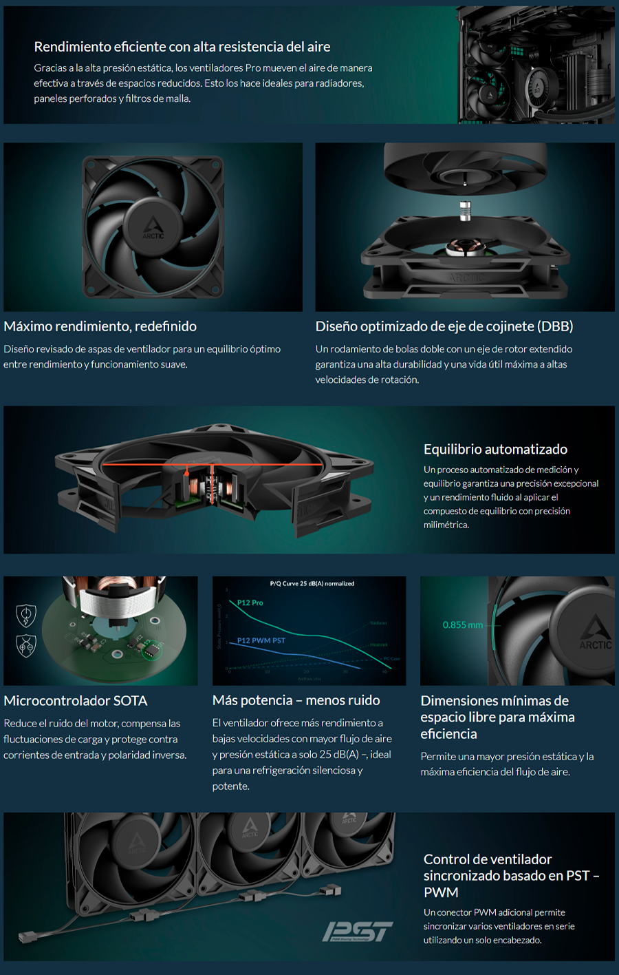 Ventilador Arctic P12 Pro PST CO / 120mm / 3000RPM / Negro / ACFAN00312A